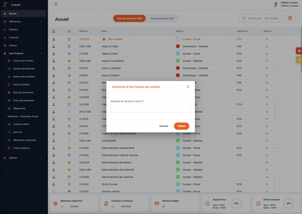 Il est possible d’ouvrir une facture par son numéro sans passer par le dossier.