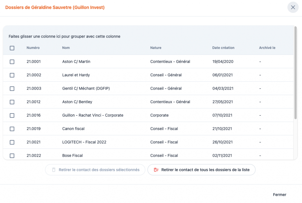 Il est possible depuis cette interface de retirer le contact sélectionné d’un ou plusieurs dossiers.