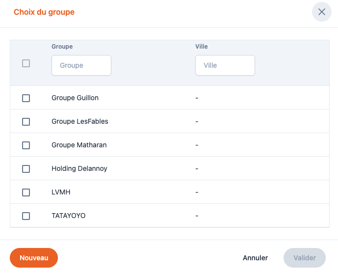 Les contacts de la liste peuvent être associés à un groupe. La notion de groupe est importante car elle permet d’obtenir des analyses financières en prenant comme critère le groupe référent.